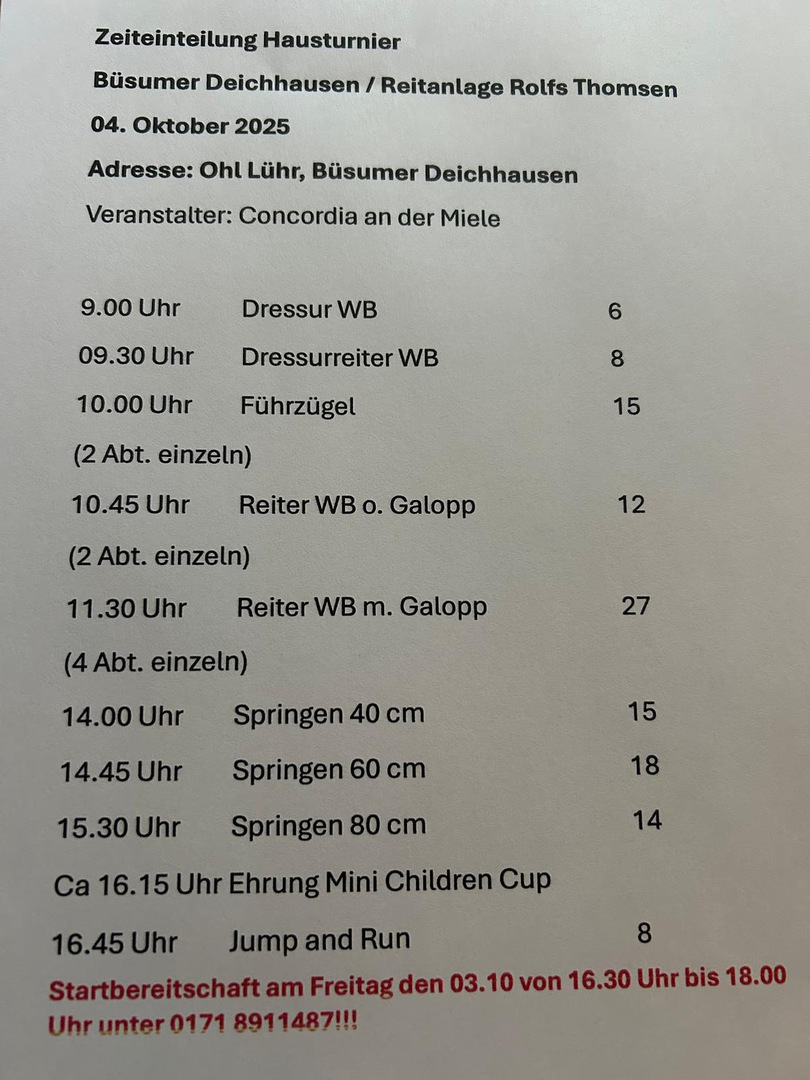 Zeiteinteilung Hausturnier Büsumer Deichhausen 04. Oktober 2025